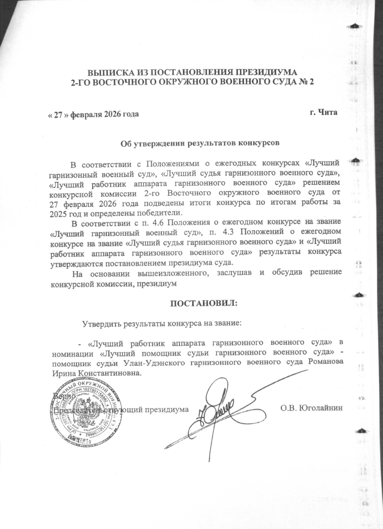 Лучший помощник судьи гарнизонного военного суда